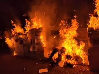 Els han cremat després de simular un judici contra 'el rgim del 78', condut per Roger Español, el manifestant que va perdre un ull durant els altercats de l'1-O.