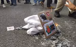 Diversos manifestants independentistes han cremat aquest divendres fotografies de Felip VI i el president del Govern central, Pedro Sánchez, durant la manifestació de protesta per la seva presncia tot just quan el monarca presidia el lliurament de premis del Barcelona New Economy Week (BNEW) a l'estació de Frana.