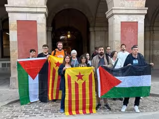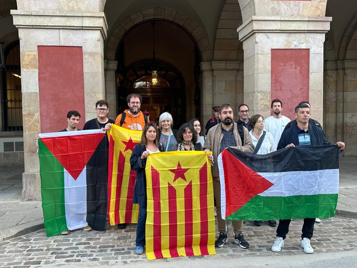 Aquest dimecres pocs minuts després de les 9.00 hores, membres del partit han acompanyat Castillejo fins a l'entrada del Parlament corejant lemes com 'Des del riu fins al mar, Palestina vencerà', i després s'han fet una fotografia amb estelades i banderes palestines.