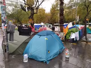 Dues persones han estat detingudes la matinada d'aquest dimecres durant el desallotjament dels acampats de la plaa Universitat de Barcelona, han informat a Europa Press fonts de la Gurdia Urbana.