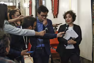 Segons ella, el futur d'aquest país "est en joc", per la qual cosa Podem continua amb "la m estesa i convida a la reflexió i al dileg". Aquest missatge arriba abans que el PSOE i Podem es reuneixin per prosseguir amb les negociacions de cara a la votació d'aquest dijous per investir Sánchez president del Govern de l'Estat.