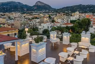 El 'rooftop' del Majestic Palace Hotel que acull la Terraza Dry Martini Sorrento té una vista de 360 graus que abasta des del mar del Golf de Npols, amb el Vesuvi al fons, fins als turons de la península de Sorrento.