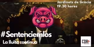 Han cridat a reunir-se a les 19.30 hores d'aquell dia als Jardinets de Grcia i han afirmat: "Contra la repressió, lluita popular al carrer", amb el dibuix d'un porc emprenyat assegut en un tribunal de justícia.