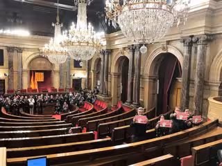 Els diputats han mostrat un cartell en què es veien punys alçats per després alçar els seus, i han sortit de l'hemicicle per sumar-se a la mobilització convocada pels Comitès de Defensa de la República (CDR) i l'ANC enfront del parc de la Ciutadella amb el lema 'Tot el suport del poble'.
