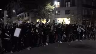Els Mossos d'Esquadra proven de dispersar centenars d'antifeixistes a la Rambla Catalunya de Barcelona cap a les 22.20, alguns dels quals anaven encaputxats i els han llanat objectes.