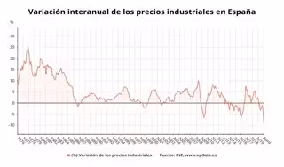 Els preus industrials van baixar un 3% a l'abril en relació amb el mes de mar i es van enfonsar un 8,4% en taxa interanual, la caiguda més destacada de la srie histrica que comena el 1975, segons ha informat aquest dilluns l'Institut Nacional d'Estadística (INE).