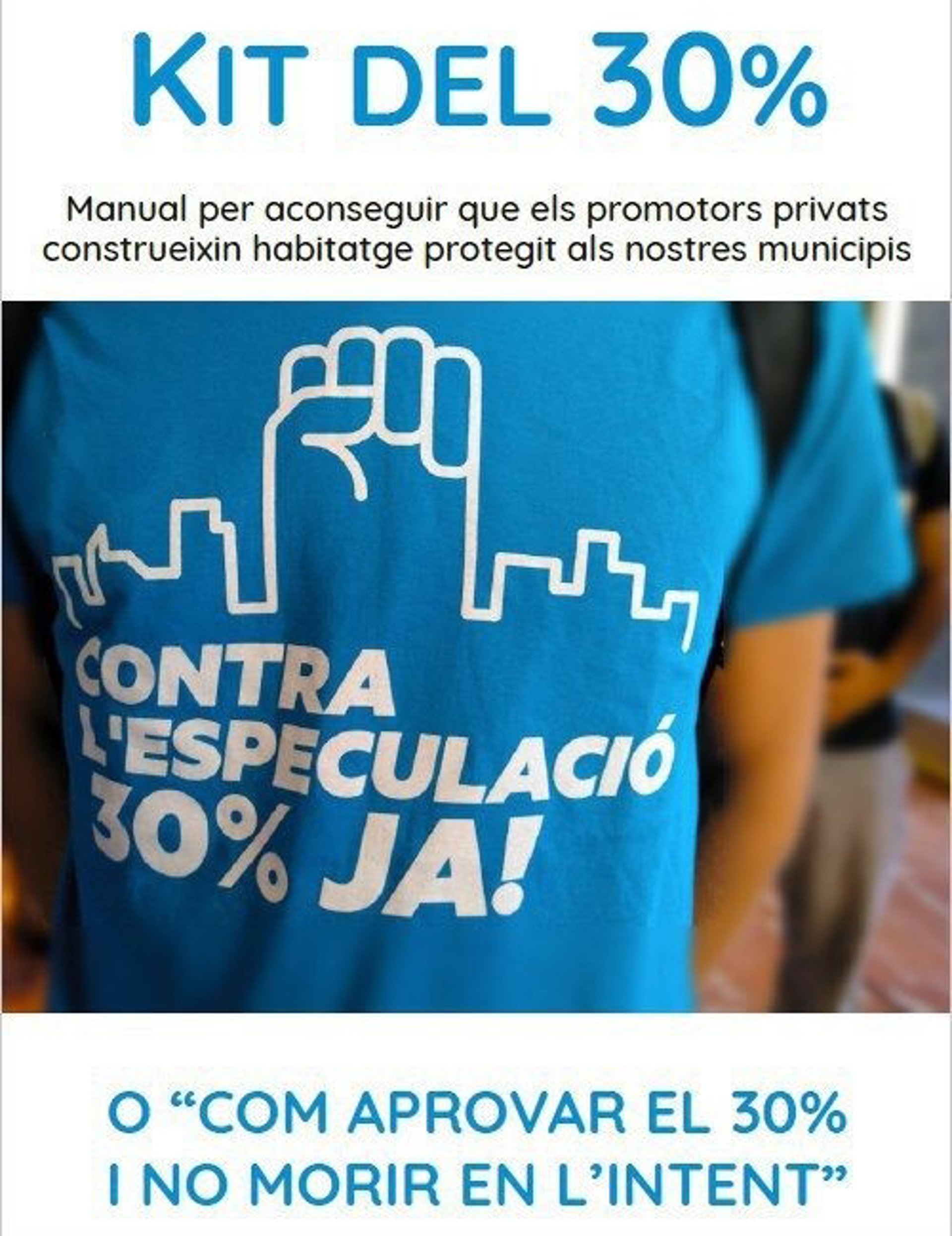 El grup promotor de la mesura per destinar a habitatge assequible el 30% dels pisos nous de Barcelona ha llanat el 'Kit del 30%', un manual per ajudar la ciutadania i les entitats de tot Catalunya a estendre aquesta mesura a tots els municipis, i ha anunciat la celebració el dissabte 9 de febrer d'un taller per compartir aquesta "experincia".