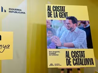 El cartell d'ERC mostra Aragons envoltat de persones que el saluden, i la candidatura ha apuntat que la imatge vol reflectir que es tracta d'una candidatura plural i varia que va "més enll d'una sola persona i posa per davant els interessos de la gent".
