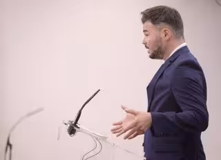 Rufián s'ha referit a les declaracions d'Ignacio Camuñas, ministre de la Transició, davant de Casado com una "reunió de velles glries", i ha adms que li "sorprn" que els qui pensaven determinades coses ara s'atreveixin a dir-les en públic.