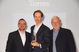 Miguel Torres Maczassek, director general de Família Torres i cinquena generació, va recollir la distinció de mans de l'editor de Drinks International, Christian Davis, en un acte que va congregar unes 150 persones, entre cellerers, periodistes i professionals del sector.