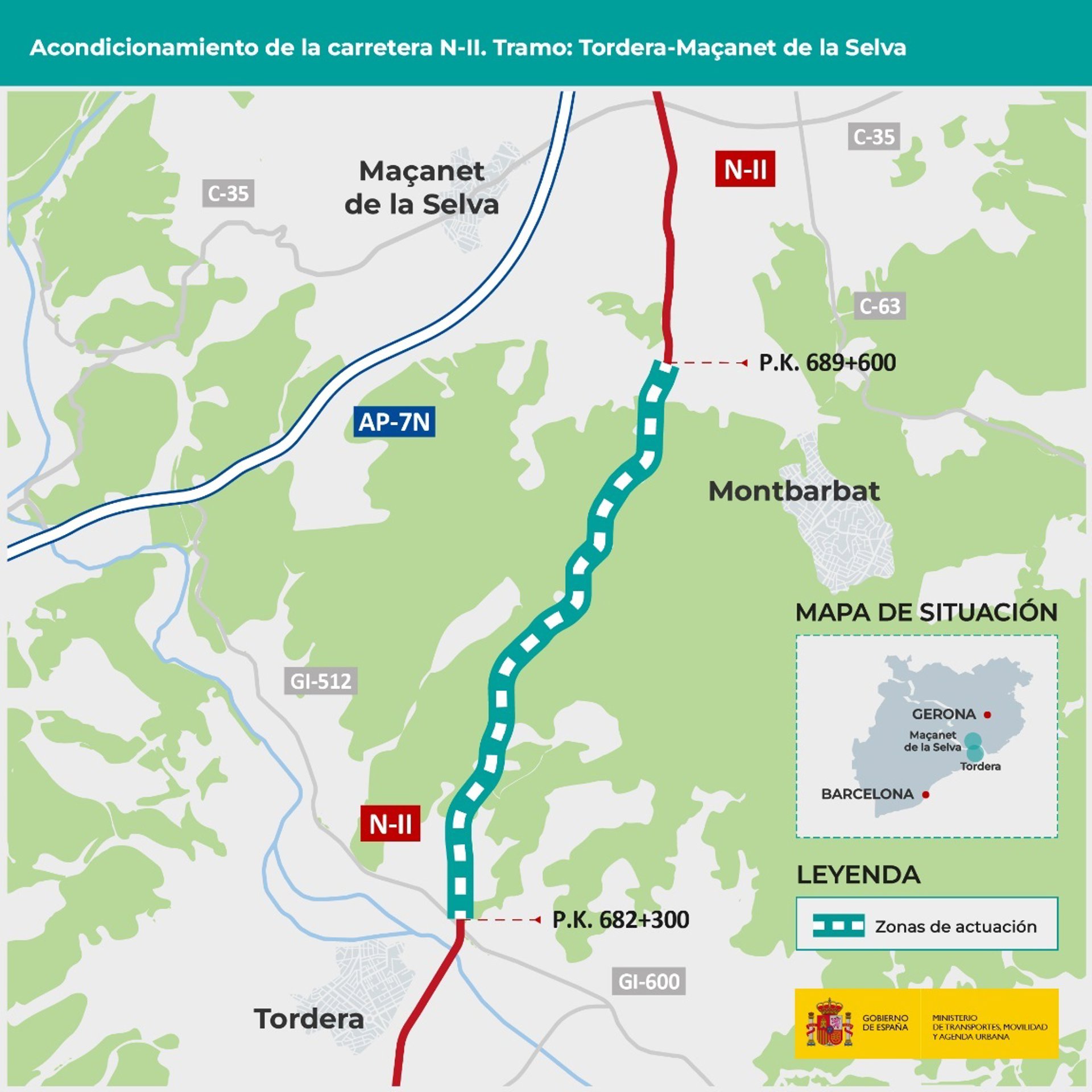 El Ministeri de Transports, Mobilitat i Agenda Urbana ha enllestit, després d'una inversió de 30 milions d'euros, les obres de condicionament de l'N-2 entre Tordera (Barcelona) i Maanet de la Selva (Girona).