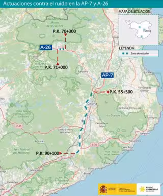 El Ministeri de Transports i Mobilitat Sostenible ha aprovat l'expedient d'informació pública i definitivament el projecte per reduir el soroll a l'AP-7, al seu pas per Sant Juli de Ramis i Maanet de la Selva, i a l'autovia A-26 a Argelaguer (Girona).