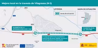 El Ministeri de Transports, Mobilitat i Agenda Urbana (Mitma) ha licitat per 3,2 milions la humanització dels punts quilomtrics 503+740 i 504+840 de la carretera N-2, travessia de Vilagrassa (Lleida).