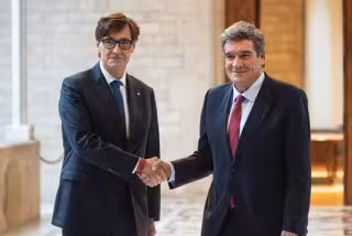 El president de la Generalitat, Salvador Illa, i el ministre de Transformació Digital i de la Funció Pública, José Luís Escriv, s'han reunit aquest dimecres al Palau de la Generalitat, on el ministre també ha mantingut una trobada de treball amb el conseller de Presidncia, Albert Dalmau, i la consellera de Recerca i Universitats, Núria Montserrat.