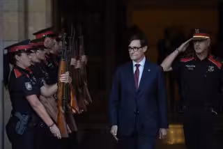 El nou president de la Generalitat, Salvador Illa, ha abandonat el Parlament al voltant de les 20.25 després de saludar al seu antecessor Pere Aragons i passar revista al cos de gurdia del Parlament dels Mossos d'Esquadra.