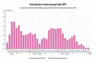 Catalunya ocupa una posició intermdia en comparació amb altres comunitats. Al capdavant s'hi situen Navarra i el País Basc, amb una taxa interanual del 0,5%, i a l'extrem oposat s'hi troba Ceuta, amb un -0,3%.