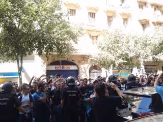 A més, entre les 14 i les 20 hores, desenes de policies antiavalots van envoltar la seu del partit sense permetre l'entrada o sortida de militants, treballadors i simpatitzants, i van tallar els accessos al trnsit pels dos carrers laterals, Marina i Sardenya.