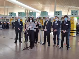L'han presentat en una roda de premsa aquest dimecres la directora de l'Aeroport, Sonia Corrochano; el director de client de Vueling, Calum Laming, i la directora d'Innovació, Sostenibilitat i Experincia Client d'Aena, Amparo Brea, entre d'altres.
