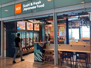El local està gestionat per la marca internacional YO! Sushi, té una superfície de 80 metres quadrats i està situat a la zona nord de l'Sky Centre de la Terminal T1.