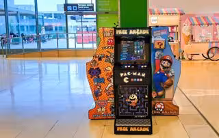 Les mquines de videojocs s'afegeixen a la resta de l'oferta de la qual disposa l'aeroport tant a l'interior de la terminal, on recentment s'ha renovat i ampliat l'oferta comercial, com a les terrasses exteriors, que també tenen zones infantils i rees d'entreteniment per a petits i adults amb jocs d'escacs i una xarranca de grans dimensions.
