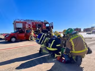L'exercici ha simulat l'accident d'un avió que surt de la pista per excés de velocitat i xoca contra un helicpter, i, a conseqüncia, les dues aeronaus s'incendien i els ocupants resulten ferits.