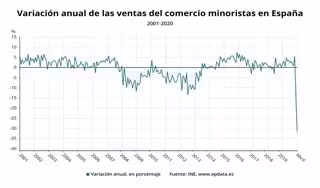 El comer minorista va registrar un descens histric de les vendes del 31,5% a l'abril en relació amb el mateix mes del 2019 per l'impacte de la crisi sanitria, segons ha informat aquest dijous l'Institut Nacional d'Estadística (INE), que calcula que prop d'un 46% de les empreses va tancar al públic.