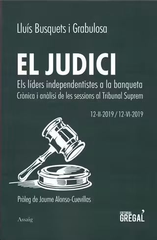 'El judici. Els líders independentistes a la banqueta' (Editorial Gregal) parteix del doble objectiu de l'autor de seguir el judici com a periodista i també com a independentista: "Per fidelitat als encausats amb els quals sempre m'he sentit en deute".