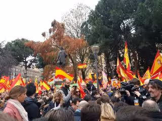 Per respecte a totes les generacions d'espanyols que han fet possible nostra democrcia, per respecte a la legalitat i pel compromís ferm de seguir construint, com van fer uns altres abans que nosaltres, un país en llibertat, ens trobem avui aquí, a aquesta Plaa de Colón. En aquesta plaa no només estem els presents, també tots aquells espanyols que, no havent pogut venir, volen com nosaltres una Espanya constitucional, unida i en llibertat.