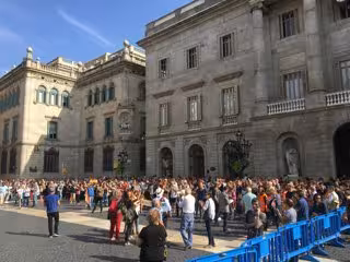Més de 150 persones continuen concentrades a la plaa Sant Jaume de Barcelona una hora després de la lectura d'un manifest per entitats i sindicats per mostrar-ne el rebuig a la sentncia als líders sobiranistes catalans.