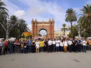 Durant la protesta s'han cridat consignes com 'Ho tornarem a fer!', 'Tots som Jordi Cuixart', 'Llibertat', Independncia' i '1 d'octubre, ni oblit ni perdó'.
