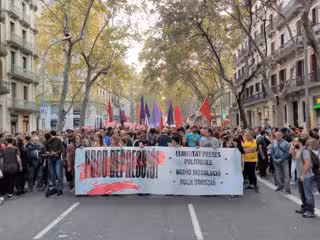 La part de la qual forma part la CUP avança a les 18.30 des d'Urquinaona cap a la Ronda Sant Pere en direcció a l'Arc de Triomf: a la capçalera d'aquesta manifestació es pot llegir la pancarta 'Prou repressió. Llibertat preses polítiques. Brimo dissolució. Buch dimissió', i porten diversos cartells amb la llegenda 'Que se'n vagin. Fora les forces d'ocupació' amb un dibuix de tricorni de la Guàrdia Civil.