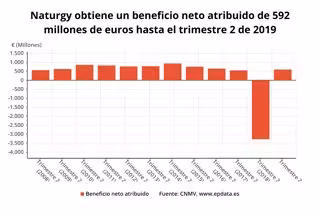 Naturgy va obtenir un benefici net de 592 milions d'euros en el primer semestre d'aquest 2019, davant de les pèrdues de 3.281 milions d'euros que va registrar en el mateix període de l'exercici passat com a resultat de la deterioració de gairebé 4.900 milions d'euros que es va apuntar el grup a causa de la depreciació que va dur a terme dels seus actius, especialment dels de generació a Espanya, va informar l'energètica.