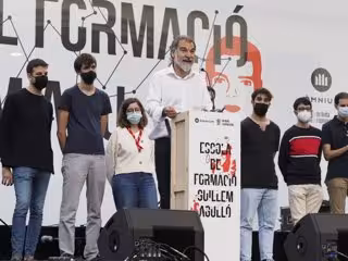 El president d'mnium Cultural, Jordi Cuixart, ha presentat aquest dissabte l'Escola de Formació Guillem Agulló, impulsada per mobilitzar la "intelligncia collectiva" i la instrucció, per enfortir-se collectivament com a activistes.