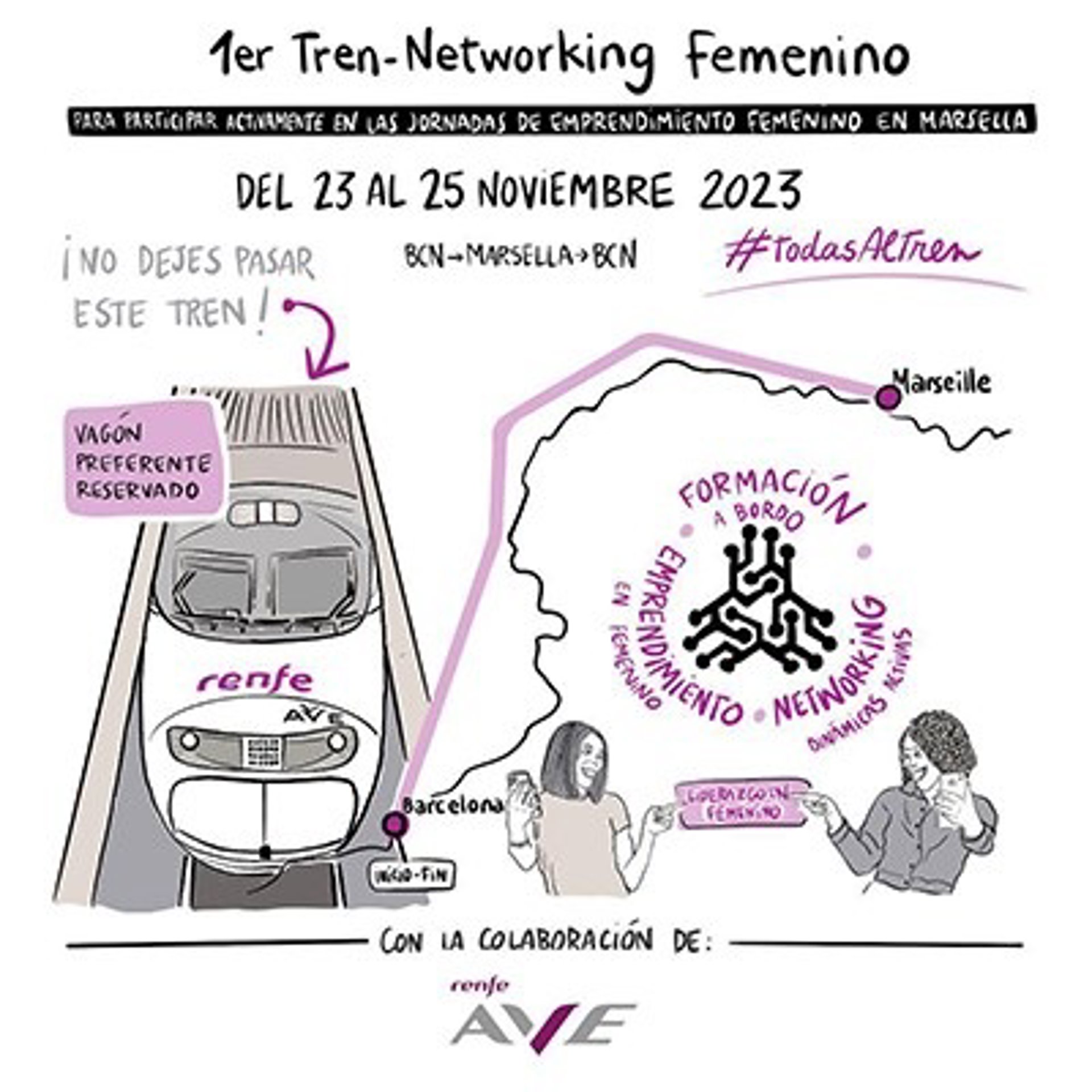 El primer Tren-Networking Femení partir de Barcelona el prxim 23 de novembre amb destinació a Marsella (Frana) amb l'objectiu de fomentar les connexions de negoci, tant nacionals com internacionals.