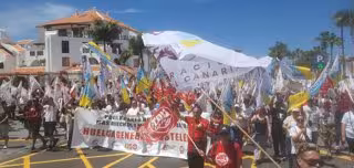 Prop de 2.000 persones s'han manifestat aquest divendres a Adeje (Tenerife) sota el lema 'Pel repartiment de la riquesa. Més drets i millors salaris' i en el marc de la vaga general d'hostaleria a la província de Santa Cruz de Tenerife, segons les dades que la delegació del Govern central a les Canàries ha facilitat a Europa Press.