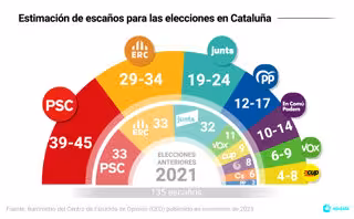 El PSC seria el partit més votat a Catalunya si ara se celebressin eleccions autonòmiques i aconseguiria entre 39 i 45 escons, superant els 33 que té el Parlament, i l'independentisme perdria la majoria absoluta.