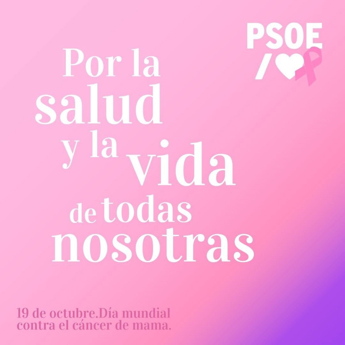 "Cada xifra que donem ens dol perquè darrere de cada nom hi ha una història, una família, una dona que s'enfronta a aquesta malaltia. El càncer de mama és la primera causa de mort per càncer en les dones. De les diagnosticades, el 30 per cent tindrà recaiguda. No són estadístiques: són vides. Aquest ha de ser el nostre compromís i la nostra motivació per seguir avançant", afirma el PSOE.