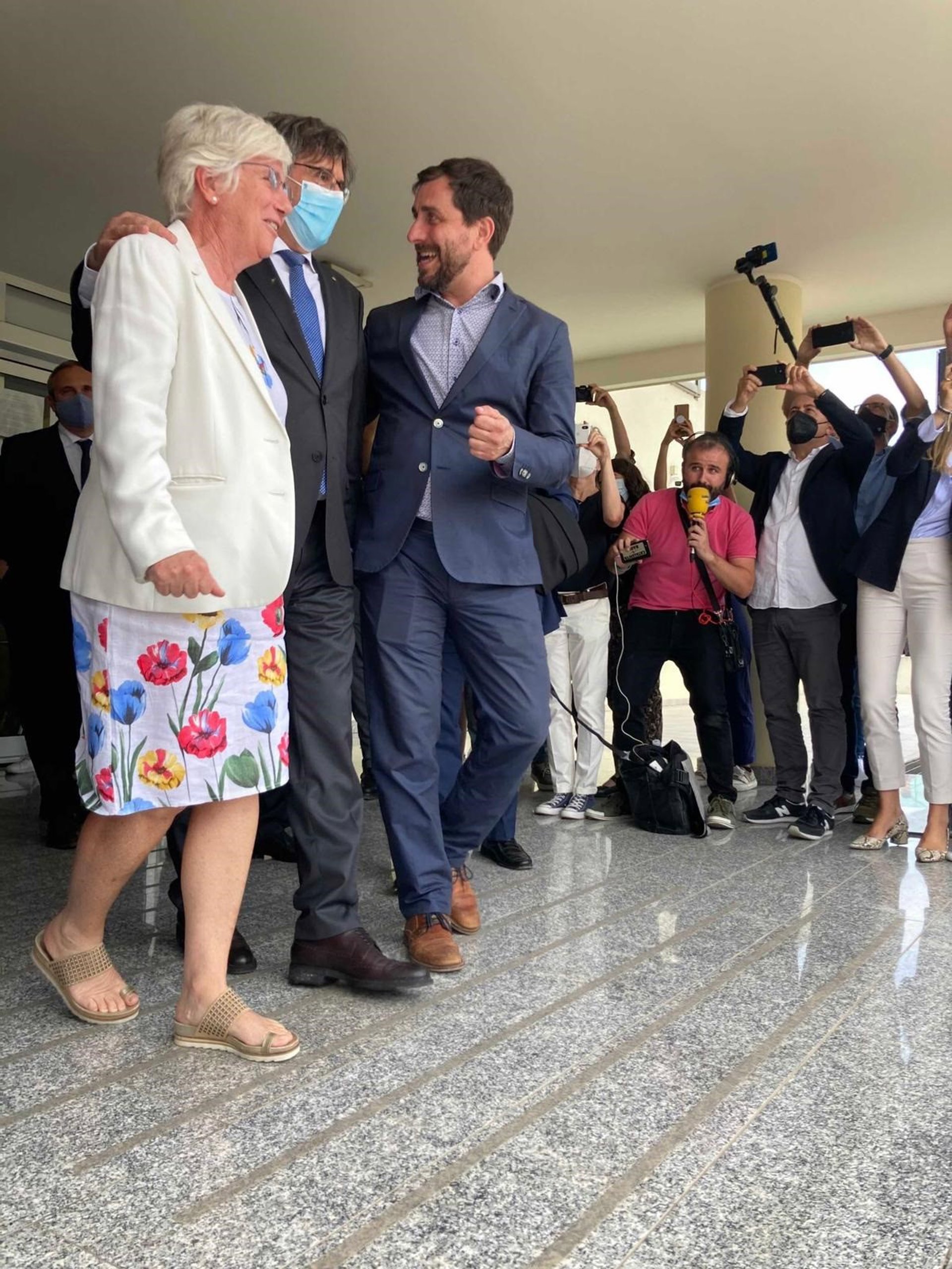 L'expresident catal n'ha sortit acompanyat del seu advocat, Gonzalo Boye, ha saludat els exconsellers Toni Comín i Clara Ponsatí, i ha estat envoltat de persones de la seva confiana com el cap de la seva oficina, Josep Lluís Alay, i el seu amic Jami Matamala.