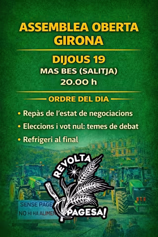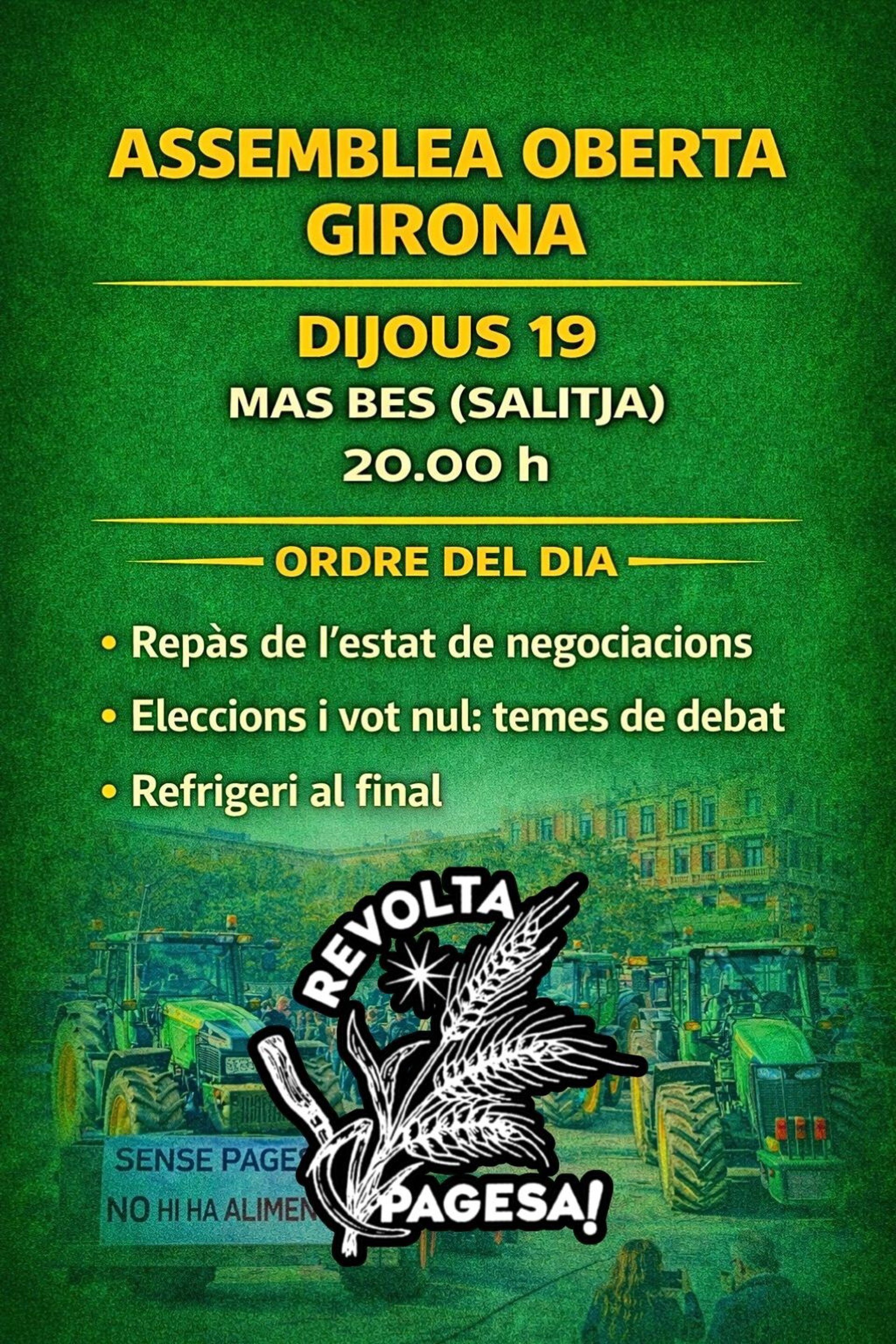 "Revolta Pagesa demana als agricultors que vagin a votar però que exerceixin el vot nul per canviar el sistema de representativitat i que es creï un espai obert en el qual puguin ser moltes de les organitzacions del sector" per defensar els seus problemes i no només els del Departament d'Agricultura, textualment.