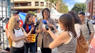 Riba ha anat acompanyada de membres de la candidatura Ara Repúbliques, amb els quals repartirà abans del partit ikurriñas i estelades per "donar veu a aquestes nacions".