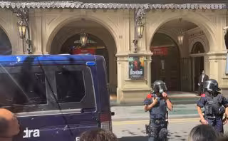 L'han rebut a la porta del teatre, a la Rambla, prop de 300 manifestants que s'han concentrat aquest dilluns des de les 11 del matí i que l'han insultat al crit de 'Fill de puta' i han llanant pots de fum vermell.