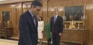 El rei Felip VI i el president del Govern central, Pedro Sánchez, han protagonitzat un breu intercanvi de bromes després de la cerimònia de promesa del cap de l'executiu espanyol i la fotografia amb els poders de l'Estat.
