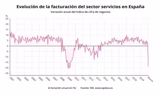 Amb els efectes estacionals i de calendari corregits, la facturació dels serveis es va enfonsar un 19,8% interanual al mar, la pitjor caiguda de la srie histrica, que comena l'any 2000.
