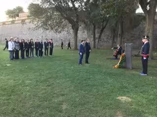 A les 08.45 hores, juntament amb tots els membres del Govern, han fet l'ofrena al Fossar de Santa Eullia, on va ser afusellat l'expresident.
