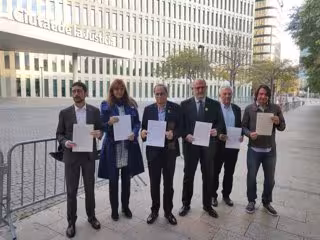 Torra i la resta de dirigents han arribat amb temps i han esperat a l'exterior de la Ciutat de la Justícia que obrís el jutjat a les 09.00 hores per presentar la denúncia d'autoinculpació.