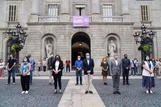 El president de la Generalitat, Quim Torra, i l'alcaldessa de Barcelona, Ada Colau, han presidit aquest dimecres un minut de silenci a la plaa Sant Jaume en condemna i rebuig al presumpte assassinat masclista d'aquest dimarts al barri del Raval.