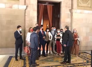 Quan han sortit, el president els ha dedicat unes paraules abans d'entrar a l'hemicicle i la reunió es deu, segons fonts de l'executiu que ha consultat Europa Press, al fet que no tots els consellers es poden quedar per les mesures de seguretat contra la pandmia i han volgut "acompanyar" el president.