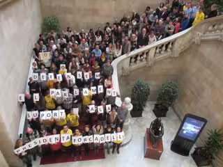 Desenes de treballadors del Parlament i diputats de JxCat, ERC, CatECP i la CUP s'han concentrat aquest dimarts a l'escala noble de l'edifici per protestar contra la presó preventiva en la qual es troba l'expresidenta de la Cambra Carme Forcadell.