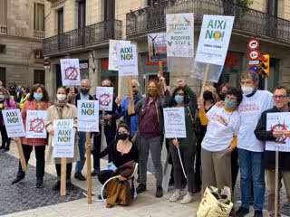 Unes 200 persones es concentren des de les 12.00 hores d'aquest diumenge davant del Palau de la Generalitat a la plaa Sant Jaume de Barcelona per protestar contra l'actual model de transició energtica.