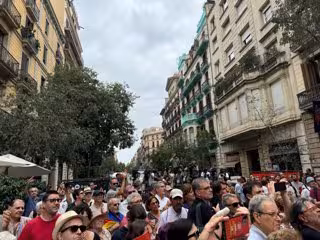 Unes 250 persones convocades per Òmnium Cultural han tallat des de les 13 hores el carrer Diputació de Barcelona amb Pau Claris per rebre els encausats de Tsunami Democràtic que han arribat aquest divendres, excepte la secretària general d'ERC, Marta Rovira, que ha anat a veure la seva família a Vic (Brcelona).